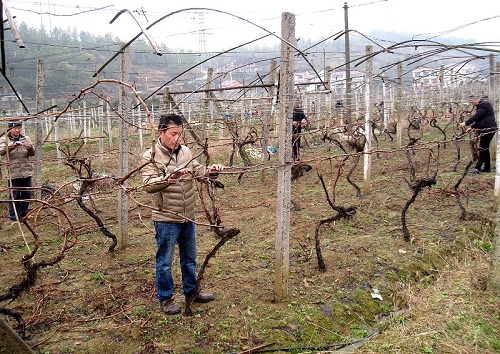 3月6日,新邵县陈家坊镇双江村的村民在忙着给葡萄滕上架、绑枝作业。双江村是省级新农村美丽乡村建设示范村,近年来,该村在建设好美丽乡村的同时,带领村民大力发展农业特色产业,不断提高了百姓的幸福感。