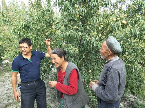 农科站干部到艾则孜·斯迪克的桃园指导桃树的管理技术