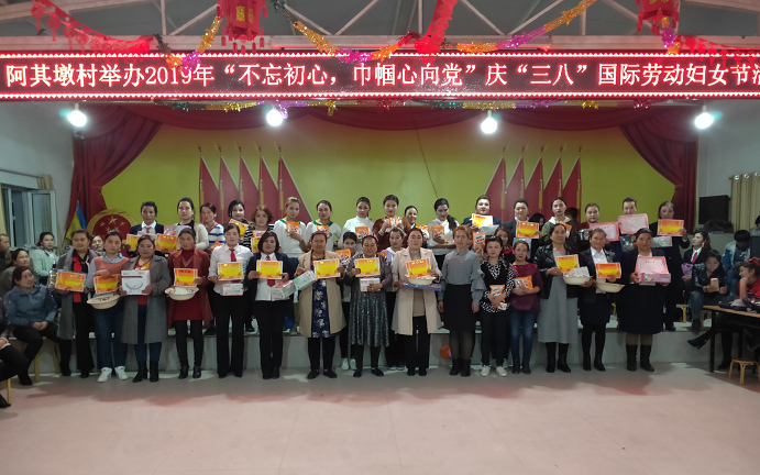 活动期间,阿其墩村评选表彰了一批“好婆婆”、“好媳妇”、“三八红旗手”等先进典型,引领广大妇女群众弘扬传承文明家风,践行核心价值观。驻村工作队队长华国虎为获得阿其墩村2019年度“好婆婆、好媳妇”荣誉称号的12名妇女同胞颁发奖品,以资鼓励,进一步弘扬中华民族孝老爱亲的传统美德。