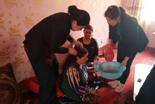 3月6日上午铁提尔社区妇女主任及部分妇女委员们来到了阿西热木·达吾提老人家中,告知她被社区评为“好母亲”,一进门便看到她老人家坐在地上,询问中才知道她早上不小心摔倒在卫生间里,社区妇女主任急忙扶她躺下不要动,要不要送去医院,老人表示只是把腰扭了下,不碍事,这才松了口气,赶紧把我们的来意告诉她,下午社区要开展“三八”妇女节活动,您老人家被评为2019年度“好母亲”要表彰,您好好养伤,我们会把奖品给您送过来,今天我们来主要帮您干干家务,老人非常高兴的说,我们伤不碍事,下午的活动我一定要参加,那我们帮洗漱打扮一下,漂漂亮亮的过节日。老人连声道谢,这是我一生中最有意义妇女节,感谢党和政府的关怀,让我们的生活越来越好,使我们的生活更有幸福感和归属感,我时常给孩子们讲,咱们赶上了好时代,要怀着感恩的心好好工作,多帮助别人,不给政府添麻烦,尽自己的力量,人人都做好自己,就是最大的爱国。