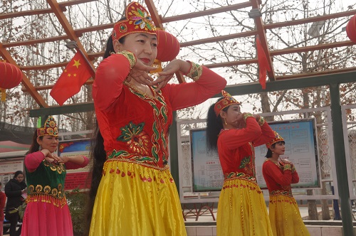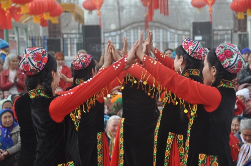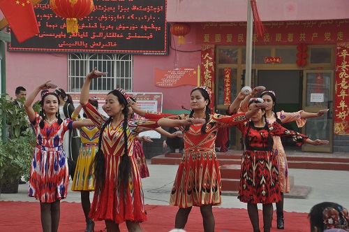 庆祝活动的文艺演出在排孜阿瓦提村舞蹈队的《美丽新疆》婀娜舞姿中拉开序幕。庆祝活动节目既有村里妇女们自编、自导、自演的舞蹈、诗歌朗诵、抢凳子、趣味小游戏和独唱,又有传统舞蹈“顶碗舞”。