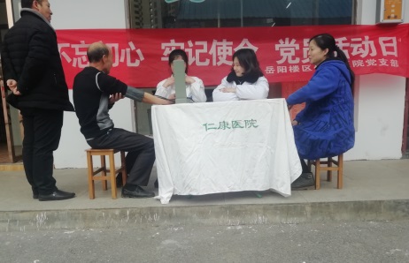 清风网岳阳讯 (通讯员:徐宙雄) 为迎接国际三八妇女节,倡导健康生活方式,增强女性自我保健意识, 3月7日下午,三八妇女节到来之际,岳阳楼区仁康医院党支部组织党员志愿者下到社区进行三八妇女节暨学雷锋主题爱民义诊志愿活动。