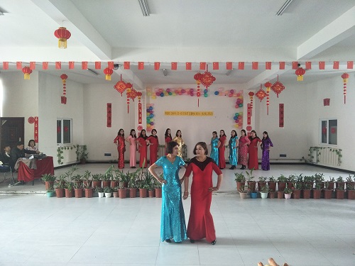 接下来开展了服装走秀,展现新时代女性风采,引领新风尚。各小队优秀妇女代表共同合唱了“我和我的祖国”、开展了知识有奖抢答、抢凳子游戏、比划猜词语等活动,将整个庆祝活动推向高潮。在活动现场,妇女们个个踊跃参与,现场气氛热闹,妙趣横生,欢声笑语不断。
