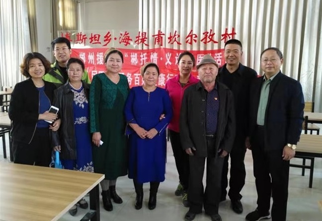 9月29日,刘孟江随同医疗组一行8人又来到离县城50多公里的克尔碱镇克尔碱村,开展入托来的第二次“郴托情.义诊送医”活动。克尔碱村地处偏避,共有村民1200多人,村民看病治疗极不方便,在县卫计委、镇卫生院和村委会的大力支持下,援托医疗组利用星期六休息时间到村部为村民送医送药,一上午共有100余村民接受看病治疗,免费送药200多元。