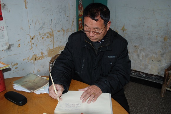 宁波走书又名莲花文书,同(治)光(绪)年间由上虞流传至余姚农村,是一种老年观众最喜欢的地方曲艺之一。今年68岁的宋百岳虽然只读过两年半的书,但他12岁开始就跟随父亲学宁波走书了。宋百岳的父亲宋月明是原上虞虞广绍剧团的一名小生演员,他不但戏唱得好,而且吹拉弹唱样样都会。在父亲的言传身教下,宋百岳很快就学会了四平调、四季调、马灯调、五令调、杨柳青调等九调二十三腔。