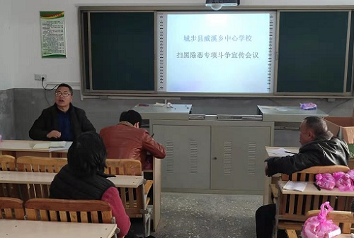 清风网邵阳讯(通讯员肖仁龙) 为了净化校园环境,保障师生的生命和财产安全,3月12日,城步威溪乡中心学校开展了扫黑除恶活动,掀起了社会打黑除恶的热潮。