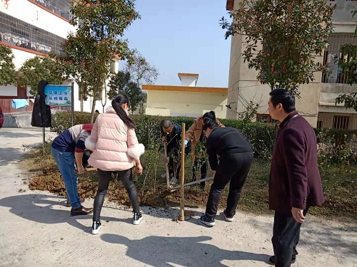 上午,阳光明媚,春风和煦,校长舒学文带领学校所有行政人员、全体党员、中青年教师来到植树现场,共同投入到了忙碌的植树当中。植树现场如火如荼,大家干劲十足,三四人一组,挖坑、扶树苗、填土、踩土、浇水,干得热火朝天,现场气氛不同一般。通过3个小时的努力,最终圆满完成了植树任务,校园里就多出了一棵棵的小树,只待树苗茁壮成长,早日成荫。