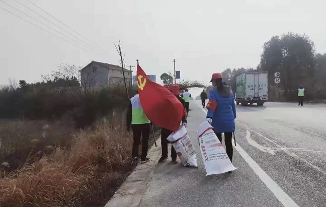 上午9时许,沐浴着温暖的阳光,大家热情似火,干劲十足,有的用扫帚清扫路面,有的不怕荆棘刺伤伸手进绿化带拣拾废纸、塑料袋、塑料罐,有的更是徒手仔细清理砖缝中的烟蒂。此外,还有党员对极个别不注意保持环境卫生的群众和乱停乱放车辆的车主进行耐心劝导。随风飘扬的红旗,闪闪发光的党徽,都在为清洁村庄行动助威呐喊,成为了公路上最美的一道风景线。