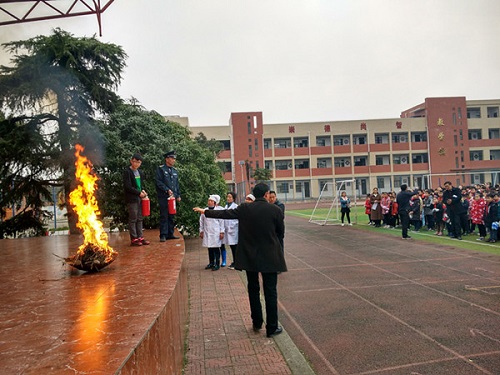 演练过程中,该校分管安全副校长谈明良就手提式干粉灭火器的使用方法,灭火站位、灭火速度,为全体参演人员进行了详细讲解,点火人员将事先准备好的易燃物点燃,后勤人员轮流进行灭火,并评出灭火能手。参加演练人员基本能够按要求有针对性地取用相应灭火器灭火。