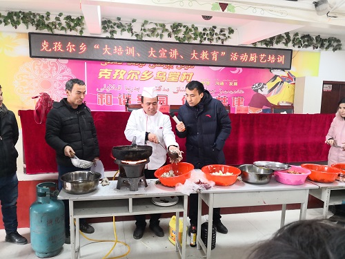 为确保培训质量,达到最佳的培训效果,培训还专门邀请乡里有名的厨师阿巴斯·牙生为大家授课,阿巴斯·牙生以讲解烹饪理论与实际操作相结合的方式,他从食材的选择,火力的大小掌握和调料的合理搭配等方面都做了详细的介绍,他一边现场演示大家非常喜爱的虎皮辣椒、家常豆腐等家常菜烹饪方式,一边讲解步骤要领,赢得了大伙的拍手称赞。县食品药品监督管理局工作人员就食品及原料采购要求、加工过程的卫生要求、餐饮具的清洗消毒、食品留样及预防食物中毒、细菌性食物中毒的防止措施、食品安全事故应急处置等多个重点环节进行细致讲解。