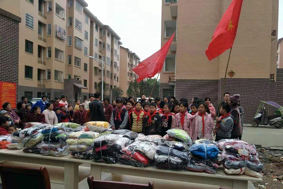 开展“手拉手”扶困帮学活动。在学校所处的紫甸村善星小区为武冈市异地拆迁贫困学子举行一次大型的爱心衣物捐赠活动、为贫困学子送温暖。这次捐赠活动的衣物是海南一位活菩萨周奶奶无偿提供的,这里的每一件衣物都展现周奶奶浓浓的爱心,该校师生对周奶奶的爱心行动表示由衷的感谢和崇高的敬意!