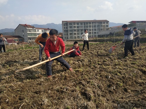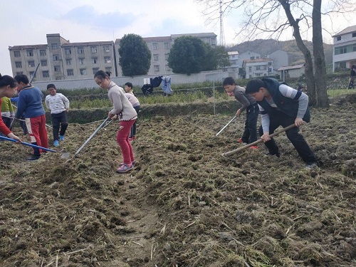 劳动教育培养学生劳动意识和实践技能:“童孙未解供耕织,也傍桑阴学种瓜。”身为乡里娃,劳动不忘本。作为大别山区乡村学校,留守儿童居多,学生家长常年在外打工,隔代教育不良效应逐步凸显:父母远离造成幼小心灵成长阴影,祖辈的溺爱,家风家教的缺位,不良的饮食生活习惯等带来的各种问题,经过连续几年体质健康测试,我们发现特别是非遗传因素的近视、肥胖现象越来越趋于低龄化,学生数量和严重程度有增无减,理论数据和实际现状一次次刷新我们对青少年体质健康的固有认知。生活水平的提高,并没有造就中小学生良好的体质,事与愿违,纵观全国中小学生体质健康水平不太乐观是不争的事实,尤其在力量素质和耐力素质方面表现方面,速度素质尤为突出,这个问题以前较多困扰着“城里娃”,现在却同样困扰着“乡里娃”,成长在农村的孩子,五谷不分,四体不勤的孩子不在少数。培养学生的劳动意识和实践技能显得尤为迫切和重要。立足我校实际进行劳动教育规划部署:本学期建成“农耕文化体验园”“劳动实践园”两个特色园区,三四五年级六个班按照班级分批入园劳动,学校组织老年教师及部分退休教师给青年教师及学生开展培训,就如何翻地开垄、锄草灭虫、播种育苗、浇水施肥等作详细实训,并随学生入园手把手教学生种植。