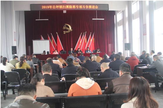 清风网怀化讯(公坪镇政府:舒刚 郑蕾 罗运根)3月13日上午,公坪镇举行扫黑除恶专项斗争推进会,各村(居)支两委成员、住村扶贫工作队员、镇政府全体干部职工共80余人参加了会议。