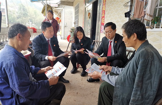 清风网岳阳讯(通讯员:舒珏惠)为全面深入推进农村扫黑除恶专项斗争活动,增强社会各界参与、支持扫黑除恶工作的积极性和主动性,3月15日,鹤城法院党组书记、院长荆亮带领刑庭庭长旷洁、执行局局长陈龙飞及部分干警前往凉亭坳乡罗家溪村开展“扫黑除恶”专项斗争宣传活动。