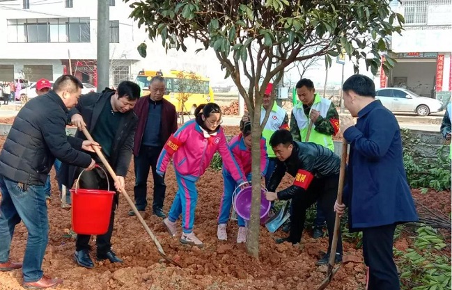清风网岳阳讯 (孙祥 许萍)春暖花开、生机盎然的三月,筻口镇党员干部和潼溪小学师生80余人在潼溪小学门口开展“绿化村庄 美化筻口”的植树节主题活动,进一步增强了村庄清洁行动宣传氛围,进一步推进了村庄清洁行动攻坚步伐,为加速建设清洁美丽幸福新筻口燃油助力。