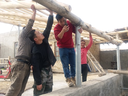3月16日,在建档立卡贫困户卡依木·肉孜的院落里,他正在加紧拧固绑桩上的最后一道铁丝。今年年初,在阿克苏地区农业农村局驻村工作队的帮助下,他争取到了庭院经济项目,在基础材料到位后,工作队队员又主动帮他挖地工、栽地桩、搭藤架。