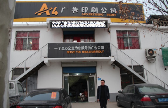 图为泰安市A4印刷有限公司总经理菅桦先生在公司大门口迎接客商。