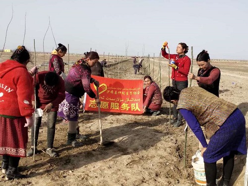 “诺鲁孜”节过后,在农村,紧张的春耕生产就开始了。通过开展义务植树活动,大家齐心协力共同栽植了杨树等防风固沙树木,让女同胞走进大自然亲自体现劳动的快乐,大家一起培土、植树,既交流了感情,又感受了合作的快乐,极大地增加了妇女组织的凝聚力,更进一步加深了她们对村妇女组织和谐、团结的情结。