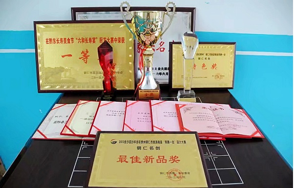 针对家乡出好茶和茶食品市场前景可观的特点,廖益彪决心要在苔茶叶上大做文章,并创出一片“绿色效益”来。从回忆里想起儿时吃茶叶煎蛋和油茶稀饭的往事开始,他到史志部门翻阅了大量的文献,摸索着用茶叶、茶青和山茶油跟各种食品和蔬菜搭配,一遍又一遍地反复研究。因为青山绿水孕育的苔茶,仿佛天生具有灵气,不是每个人都能找到最佳的钥匙来开启这道大门,它需要一个人拥有虔诚的态度、谦卑之心和执着的意志。研发茶食品,廖益彪几乎是从零开始,没有前辈成功的经验可鉴,也没有巨额的资金组建自己的研发团队,一切都是自力更生地摸着石头过河。他坚信自己只要持之以恒,就会登陆成功彼岸。正是坚持这样的信念,廖益彪熬过了一道又一道艰难的研发坎子,迎来柳暗花明的春天。2013年,他研制的“茶香糯米鸡”在参加“多彩贵州”铜仁市旅游商品两赛一会上荣获“最佳新品奖”,此后他又研发的“全茶宴”在贵阳表演展示中又赢得了贵阳消费者的青睐,每天的茶食品都被抢购一空。一位房开商被廖益彪的精湛厨艺深深折服,即向他开出投资 800万元合资经营“全茶宴”的大单,在承诺按股分红的同时,还免费给廖益彪一套房产,并负责他两个孩子从小学到大学的所有费用。房开商提出的这些优厚条件,廖益彪不是不动心,但想到家乡父老长期对自己帮助和支持,自己绝不能一甩手而了之,一定要用感恩之心回报家乡,带领他们共同致富,于是就谢绝了贵阳老板的合资盛请。