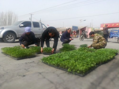 沙雅县农村信用合作联社给驻村点贫困户发放扶贫鸡苗和菜苗