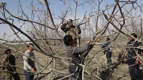 温宿县疾控中心驻恰格拉克乡庆塔买里村第一书记田玉保说“由于气温不断回升,核桃树体发芽后,根部贮存的营养不断向上运送,养分开始转化,此时不做好核桃树修剪必将损失很大一部分养分从而削弱树势,降低坐果率,影响产量,降低品质,进而减少收益。目前,庆塔买里村核桃树修剪、追肥已全部完成。为今年全村7000亩核桃园丰产丰收,果农增收打下了坚实的基础。”