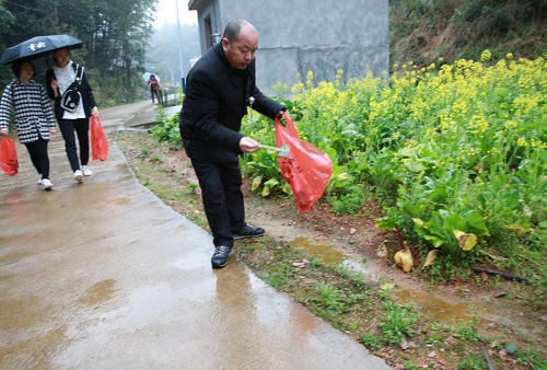 在听取了简单的情况介绍和活动安排后,迅速分成两组,马不停蹄的赶至活动地点对周边的道路及残留的白色垃圾进行仔细的清理。大家充分发扬了共产党员及志愿者不怕脏、不怕累、不怕苦的精神,田埂上、沟渠边、房前屋后到处都是志愿者们挥汗如雨的劳动身影。