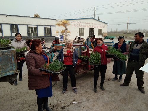 清风网讯(太平人寿新疆分公司驻沙雅县努尔巴克乡排先拜巴扎村 程龙 )3月22日,沙雅县努尔巴克乡排先拜巴扎村村委会的大门口挤满了人群,排队领取的喊声使门外一片热闹非凡。太平人寿保险有限公司新疆分公司驻村工作队当天为本村115户贫困户发放菜苗7000余棵,助力发展庭院经济使中央专项扶贫的小拱棚项目发挥成效落到实处,小拱棚里种满了菜苗,村民们流露出感激和喜悦的微笑。
