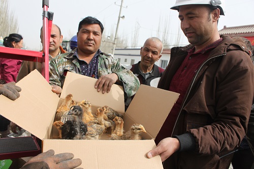 据悉,沙雅县教育和科学技术局驻红旗镇喀什托格拉克村工作队积极引领村民致富,利用集中培训、入户宣讲、观摩学习、外出务工等多种积极有效的脱贫方式,为贫困户打开致富渠道。2018年,工作队出资5000余元为全村36户贫困户每户发放30只鸡苗,每户村民增收1000元左右。今年,工作队出资6000余元为贫困户购买了30只鸡苗,还为全村19户困难户免费购买了鸡苗,与此同时,积极动员贫困户再购买,形成养殖规模,拓宽致富门路。