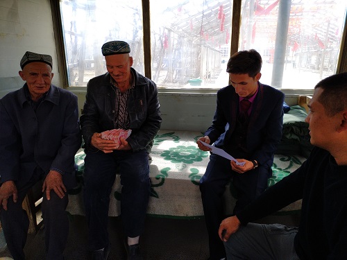 工作队在入户走访过程中了解得知此事后,指派工作队员买吾兰·居曼与警务室、社区联系,在多方努力下联系到肉孜·库尔班,并通过电话、家访的形式,晓之以情、动之以理,讲明法律要求及违法后果,通过法律震慑,终于在3月27日将剩下的42000元从肉孜·库尔班处拿回来,并在工作队、村委会干部的见证下交到毛拉麦提·赛麦提手里。