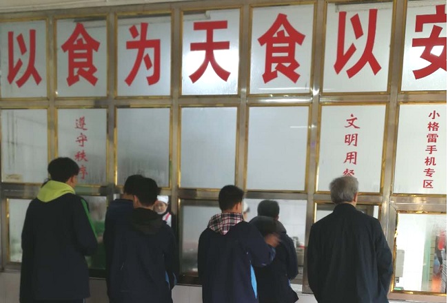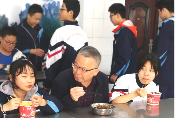 老师和学校领导每天中午都会跟学生一起共进午餐,每天中午都是两荤两素。目的就是为了让孩子们吃饱、吃好。