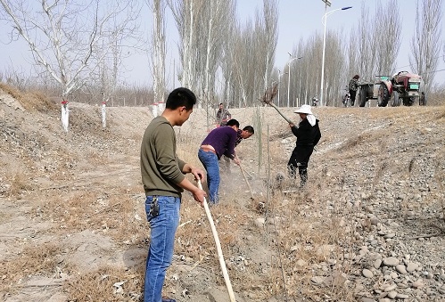 温宿县疾控中心驻庆塔买里村工作队队长、第一书记田玉保说:“我们计划通过植树造林在庆塔买里村打造一条防风沙绿色通道,改变这里的自然环境,真正造福老百姓。”