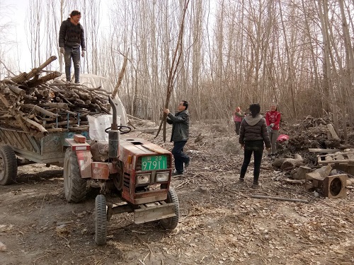 在一次走访中,何新看到热艳古丽院子里的枯树一直堆放在草料旁,给牛羊拿草料时都很困难,她平时还要照顾家中的小孩,了解了情况得知家中没有劳动力一直想着搬运至空闲的地方,何新立即联系拖拉机,带领工作队和村干部一起将枯树干、树枝移走。大家干劲十足,比拼着速度。经过大家一上午的努力,终于将枯树干、树枝清理干净。