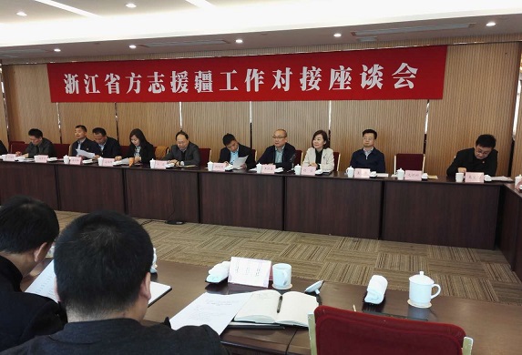 3月25日沙雅县委常委、组织部长王伟带领县史志办工作人员在杭州参加浙江方志援疆对接会议