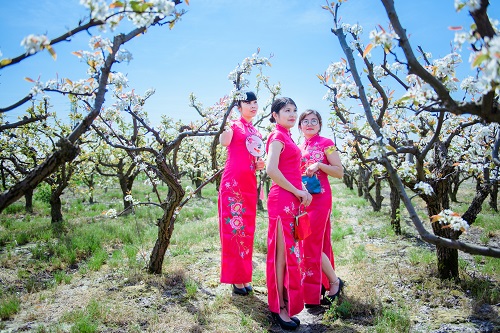 梨花丛中,她们穿着鲜艳的旗袍、盘着精致的发型,在洁白梨花的映衬下更加美丽动人,为赏花旅游增色添彩。她们用舒缓而优雅的步调,顾盼生辉的眼神,婀娜曼妙的身姿,演绎风情万种,或优雅复古,或清丽脱俗,她们赏梨花观美景,尽情展示女性的婉约之美。
