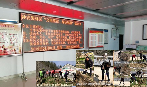 活动中,司法局向干警下发通知和《神农架林区“文明祭祀、绿色殡葬”倡议书》《神农架林区移风易俗倡议书》,印制发放了“树新风—我践行”宣传册,并在局一楼大厅视频滚动播放,组织干警在帮扶村麻湾村开展以“美化乡村”为主题的植树活动,号召全体干部职工积极参与缅怀先烈、传承优良传统活动,参与移风易俗活动,争做推进社会文明的倡导者、传播者和践行者。