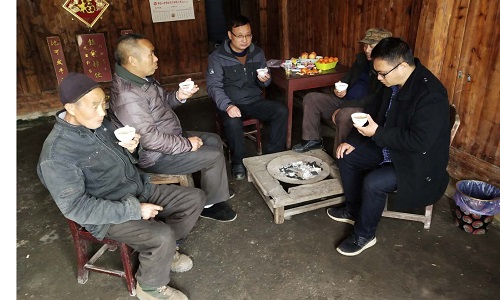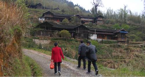 首访的第一站就是肖红同学的家,肖同学的家长就是作者30年前的学生。浓浓的师生情依旧,清洁干净的苗家木楼依旧,块石铺就的进寨沿溪小径也仍依旧,不变的永远是贫穷,变的就是家长当初童真的笑脸。苗民历史上长期受到战乱影响,他们沿沅水而上,深匿于险山恶水之间。想当年诸葛亮南征来到城步也不敢跨越巫水河一步,只好在此筑“一步之城”,这便是城步。车一路上行海拔也越来越高。进入海拔600m的茅坪七里山村肖红的家,晴朗的三月天里很感受到丝丝寒意,这里全年积温低日照少,农作物生长期长产量却不足平地的三分之一,苗家人只能以五谷为主食用杂粮填肚子充饥寒。离开肖红的家,我们每去一地,多得到家长的油茶款待。