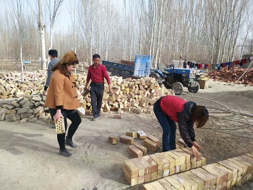 在科台克吐尔村到处可以看到一派繁忙的景象,村民们正在忙的施工,搬砖运瓦、挥锹铲土、美化家园。驻村以来,拜城县克孜尔歌舞团驻大宛其管委会科台克吐尔村工作队始终聚焦主责主业,坚持做实做细群众工作,坚决执行人居环境整治工作,扎根基层、深入农户家中,急群众之所急,盼群众之所盼,在了解到贫困户阿布来提·吾守儿家想进行三区分离,劳动力不够的情况下,工作队第一书记如孜完古丽·艾力立即组织工作队员及邻居帮助阿布来提·吾守儿家进行庭院改造。