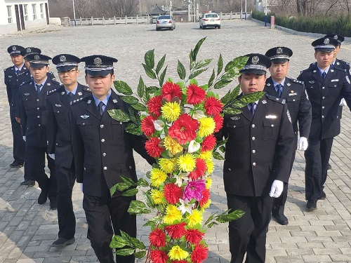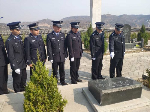 在“革命烈士永垂不朽纪念碑”前,黄陵所全体干警满怀无比崇敬之情听取了各时期革命烈士的光荣事迹。在肃穆的氛围中,民警们整齐列队,集体向烈士三鞠躬,默哀致敬。随后,向向纪念碑敬献花篮、对陵园进行清扫、擦洗了烈士墓碑,表达了深切的缅怀之情。