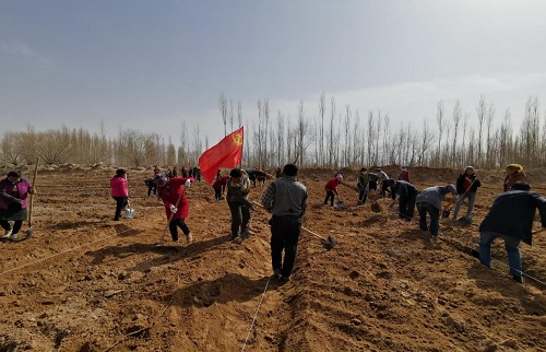 清风网讯(新疆克孜尔水库管理局驻村工作队:郑松林)春回大地,草长鸢飞。为深入贯彻落实习近平总书记关于生态文明建设的重要论述,牢固树立“绿水青山就是金山银山”的发展理念,4月2日,克孜尔乡吉格代力克村“访惠聚”工作队第一书记陈超、村党支部书记吐尔迪·艾买提带领200多名村民,在吉格代力克村栏杆处植树造林。