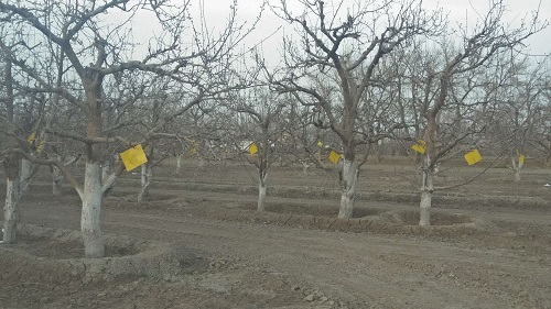 该驻村工作队引导村民按照农业专家的指导意见,给每棵梨树挂上黄色的诱虫板,也叫粘虫板。利用蚜虫、斑潜蝇、粉虱等害虫飞行时的趋黄性,将黄板表面涂有一薄层胶粘剂,害虫飞向黄板后,被胶粘剂牢牢粘住,起到捕捉和杀灭害虫的作用。诱虫板引诱力强、粘捕率高、诱虫广普、无毒、无害、无污染。柯坪村村民用物理防治的方法减少农药喷洒,杜绝果树农药残留的隐患,为今年的丰产增收打下坚实基础。
