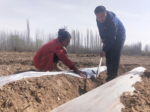 为了带动大家种植果树的积极性,拜城县团委、妇联驻康其乡和谐村工作队开展了“同植团结之树,共建美丽家园”活动,工作队员们和结亲亲戚一起在果园里打埂子,铺地膜,挖树坑,种杏树,绑塑料膜,在这个春天共同种下民族团结的果树,等三年秋天共同见证民族团结硕果,助力美丽庭院建设,共筑致富小康路。