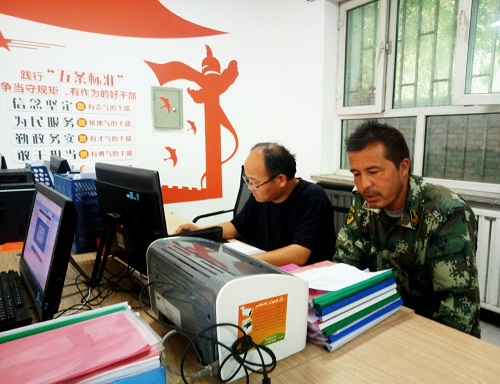 图为工作队员陈银山与村治保主任乃买提·艾买提一起办公