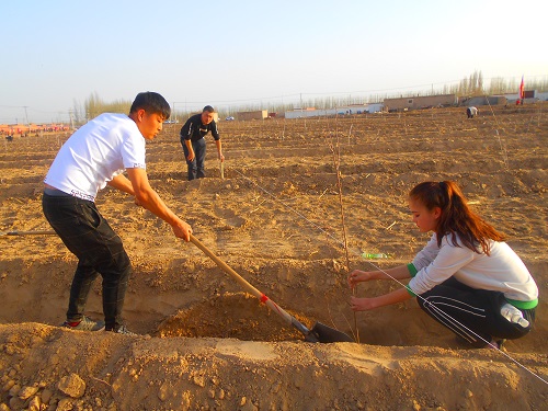 清风网讯(拜城县委统战部驻村工作队 :丁先斌)今春以来,牙斯热木英阿依玛克村“访惠聚”工作队早计划、早动手,对村民屋后124.7亩老果园、杂木林进行改造。村民屋后的老果园退化,出售果子的收入填补不了管理果园的窟窿。杂木林成了村民鸡、狗、牛、羊的游乐园,生活垃圾的填埋场,产生不了经济效益,也污染和影响着农村的生态环境。为让每一寸土地生产出最大价值,驻村工作队、村党支部与后院有老果园、杂木林的村民商量,征得村民同意,带动村民对屋后老果园、杂木林进行改造,种上吊干杏。通过老果园改造,杏花的美、杏子的香、杏干的甜……吸引城里人到村里来感受田园风光、体验田园生活,城里人到村子里来旅游、来消费……带动第三产业发展,杏干的价值及村民利用杏园发展第三产业产生的附加值,成为村民增收的又一渠道。