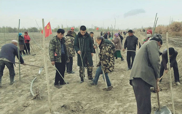 沙雅县纪律检查委员会驻村工作队始终坚信只有环境改善了,农民的生活才能更好。2016年工作队来到该村就一直把植树造林做为村“两委”的头等大事,工作队携村民无论春夏、还是秋冬都要积极植树。“今天植下一棵树苗,明天就会收获一片绿色”也是写在村委会墙壁上的标语。