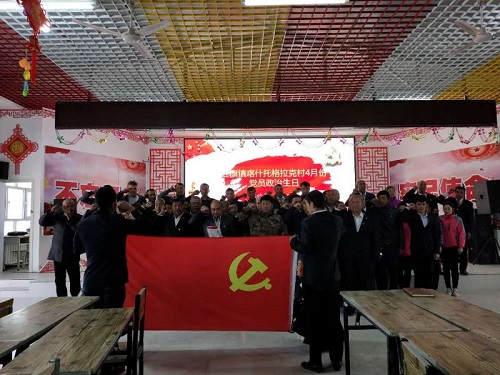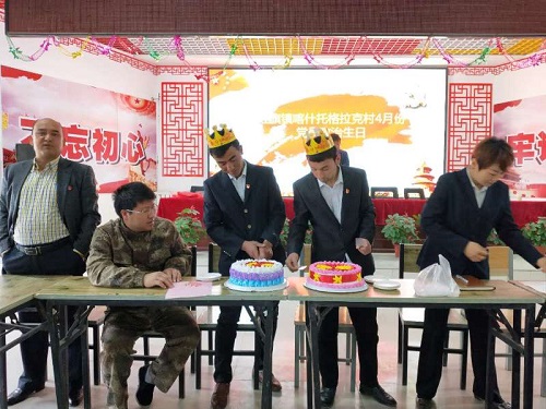 清风网讯(沙雅县教育局驻村工作队:畅玉萍)为深入推进喀什托格拉克村“两学一做”学习教育工作常态化、制度化,充分发挥党组织的战斗堡垒作用和广大党员的先锋模范作用,激发党员的积极性、主动性和创造性,4月9日上午,沙雅县教育和科学技术局驻红旗镇喀什托格拉克村工作队组织54名党员、入党积极分子一起给2名党员过“政治生日”。
