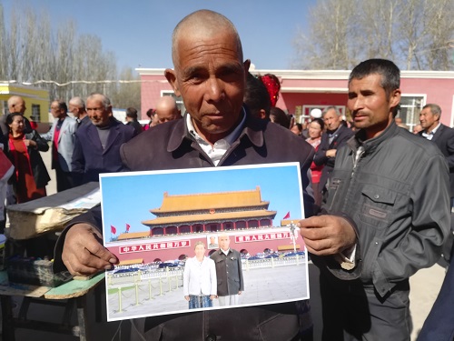 70岁的艾则孜·麦麦提说:“给老年人免费照相的事还是头一次碰到,准备买个相框装裱起来挂在家里慢慢欣赏。我这一辈子都没有走出过新疆,最大的梦想就是去北京天安门看毛主席,现在年纪大了更加去不了了,今天我拿到了我和老伴跟天安门的合照,这是圆了我一个最大的梦想啊!感谢党和国家的好政策,感谢工作队。”