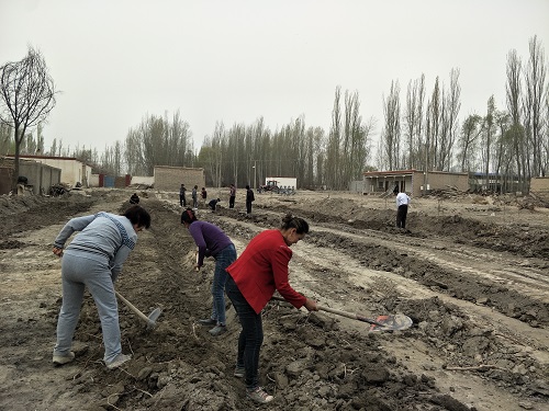 饮水思源,好的环境得益于一年又一年不懈的植树。而今,阔纳买里村每逢春季,村民或自发或有组织的都在开展植树活动,田间地头、戈壁滩涂,到处是一片热火朝天的植树景象。村民们齐心协力,坎土曼上下翻飞,一棵棵树苗正与泥土亲密接触,一桶桶清水正滋养着茁壮的生命。66岁的阿依木尼沙大娘边挥舞坎土曼边说:“我们嘛以前环境不好,吃土嘛,身体嘛也不好,现在环境好了嘛,身体也好了,我嘛要一直种树”。正是因为这种对美丽环境的期待,村民们干劲十足,誓要把天变得更蓝、地变得更绿、水变得更清。
