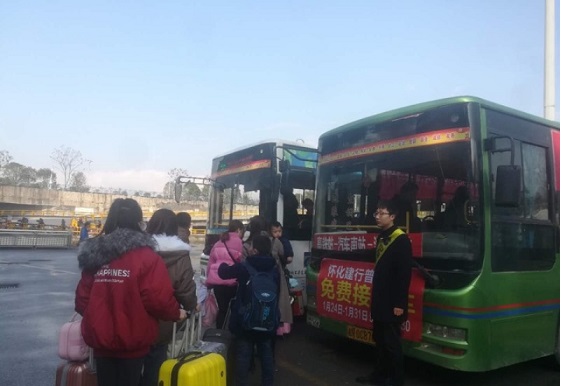 该行春节期间普惠金融宣传车免费接送返乡人员