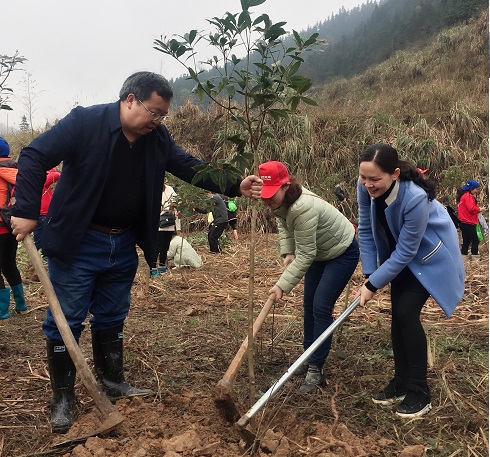 该行组织员工与客户参加植树节活动,共建绿色怀化