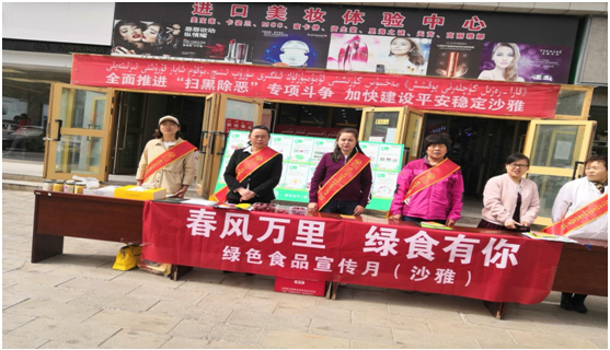 一是大力开展宣传咨询活动,普及推广绿色、有机农产品知识。设立咨询服务台,印发食品宣传手册、宣传画、绿色小麦生产技术规程、绿色红枣生产技术规程1000余份,接受咨询人数165人次解疑答惑等形式普及了广大人民群众的绿色食品消费常识,增进了消费者对绿色食品的了解和对绿色食品品牌的关注;二是推介一批绿色食品,倡导绿色消费。设立产品体验区、产品展示区,现场摆放了沙雅县胡杨韵蜂蜜产品专业合作社的地理标志产品:罗布麻蜂蜜、罗布麻蜂王浆、罗布麻花粉、罗布麻茶;阿克苏地区盛疆制粉有限公司的特制一等小麦粉、新疆拉面粉、馒头粉、饺子粉;阿克苏洁康枣业的阿克苏灰枣、阿克苏骏枣。百姓可以现场亲身品尝体验绿色食品的魅力,可以放心选购、放心消费。三是普及绿色、有机产品打假维权知识。由执法人员现场讲解演示绿色、有机产品标志的识别和投诉举报途径。